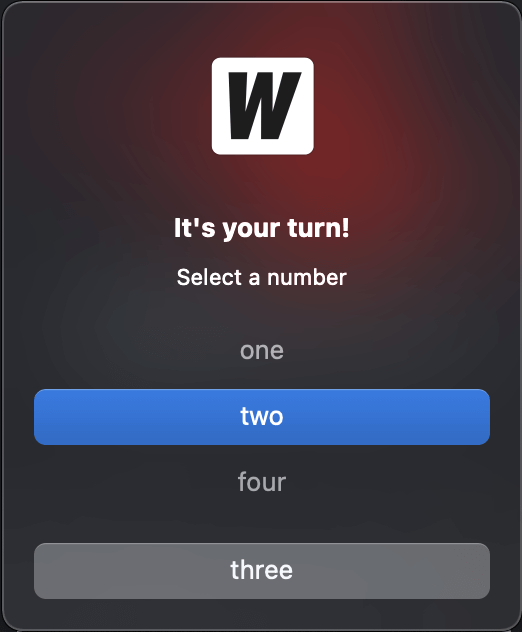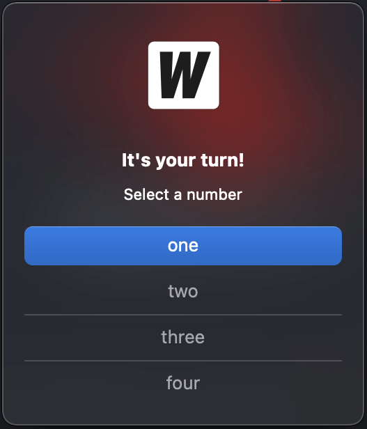 第二个按钮显示为默认值。 当 return 被按下时,则返回数值“two”。